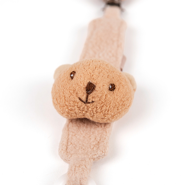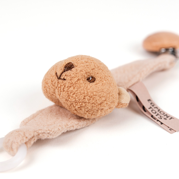 A lovely pacifier holder, made of bio-cotton and recycled polyester. Marcel, the bear will guard your pacifier for you wherever you go!