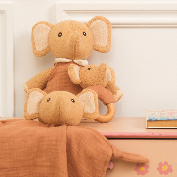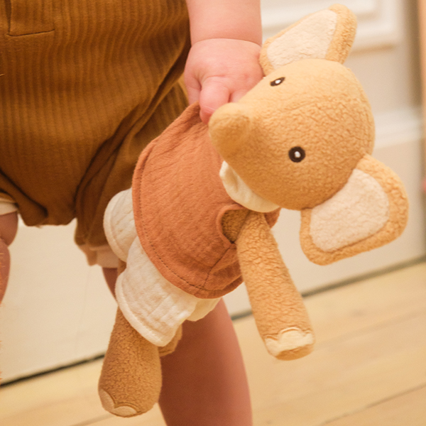 Soft ears, a gentle trunk, and a calm little gaze — Elephant Ollie is always ready for a cuddle. Made from cosy plush in warm, earthy tones, this tender friend sits happily beside little ones during playtime or story time. A comforting companion that invites imagination and feels just right from the very first hug.