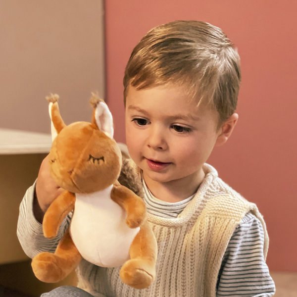 Pam, the little squirrel is so soft and lovely! Designed by Egmont Toys and manufactured with care. Made with soft velours and ready for big hugs.