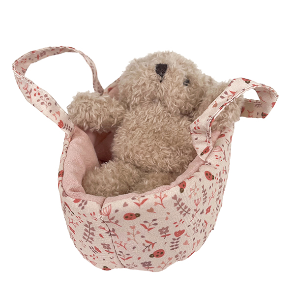 Meet Mini Morris in a Carry Cot, a tiny teddy tucked in for cosy journeys. Soft, snuggly, and perfectly sized for little hands, he travels everywhere in his charming fabric cot. A sweet companion for nurturing play and on-the-go adventures.