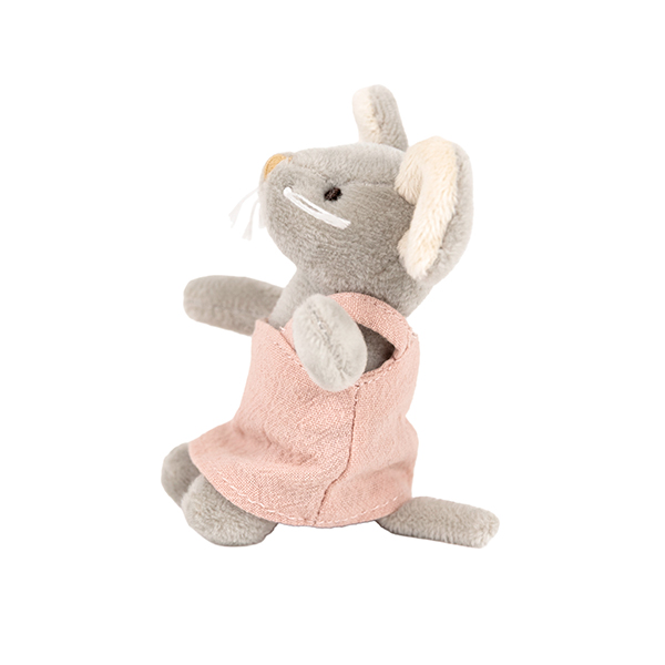 Meet Agathe the Mouse Miniature, a tiny friend full of quiet charm. Dressed in a soft little dress and sized for small hands, she’s perfect for gentle play and pocket adventures. A sweet plush companion for cosy moments and imaginative stories.
