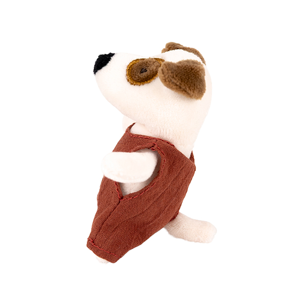Meet Eddie the Dog Miniature, a loyal little friend with a playful heart. Dressed in his soft overalls and sized just right for small hands, Eddie is ready for gentle play and pocket adventures. A sweet plush companion that brings stories and smiles wherever he goes.