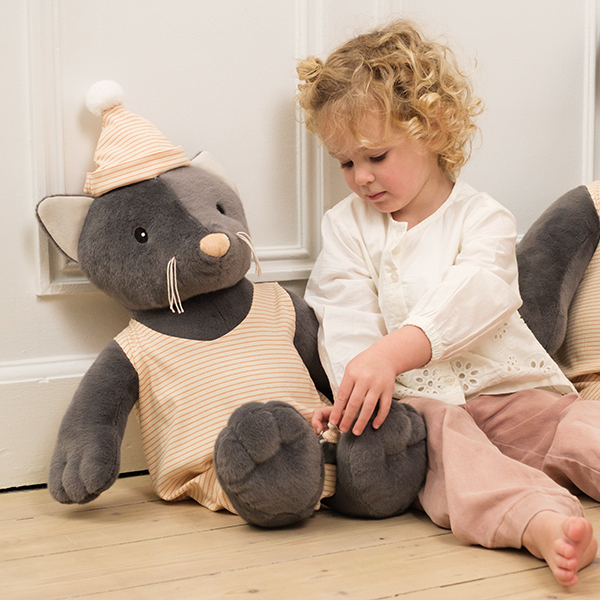 Meet Malo the Cat, a soft medium-sized companion made for cosy cuddles and calm play. With his gentle expression, striped outfit, and sleepy nightcap, Malo brings a sense of comfort and quiet charm. A beautiful plush friend to hug, cherish, and keep close during peaceful moments.