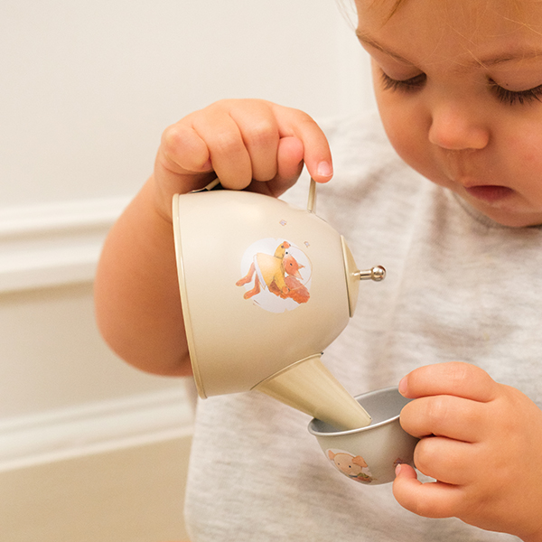 Meet the Tin Tea Set Friends in a Basket, a delightful pretend-play set made for cosy tea moments and shared imagination. Presented in a charming woven basket, this illustrated tin tea set invites little hosts to pour, serve, and play picnic anywhere they like. Perfect for encouraging social play, storytelling, and gentle role-play, it’s a timeless companion for afternoons filled with friendship and fun.