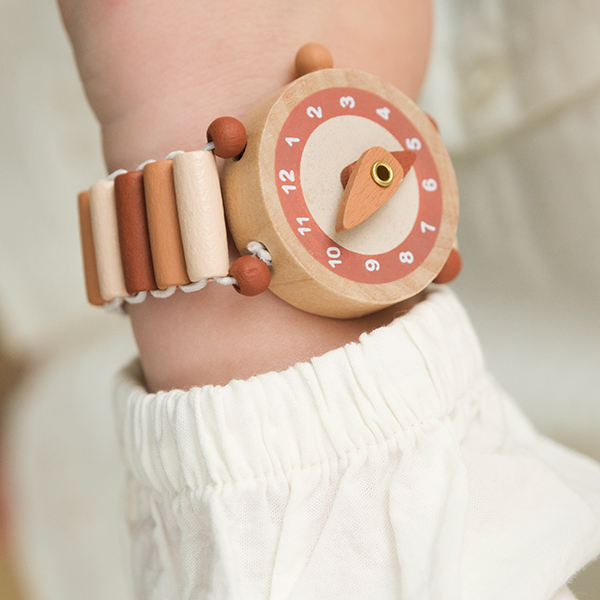 Tick-tock goes the day as little hands twist and turn the smooth wooden watch hands. Suddenly, snack time becomes an adventure and bedtime feels just right.