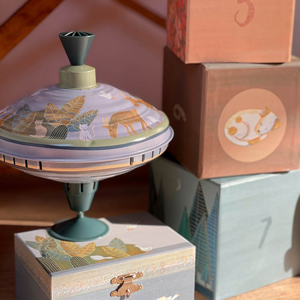 A great classic, this metal spining top Countryside. Pull and push on the handle, the top starts to turn around with a nice humming sound. Hours of fun guaranteed. 10 months +