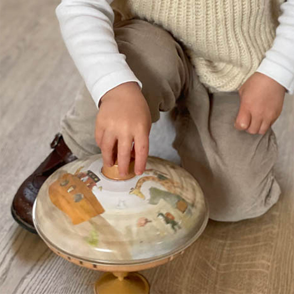 Watch the animals go round on the Noah's Ark spinning top. Comes with a broad base for more stability. Makes a nice humming sound. 10 months+