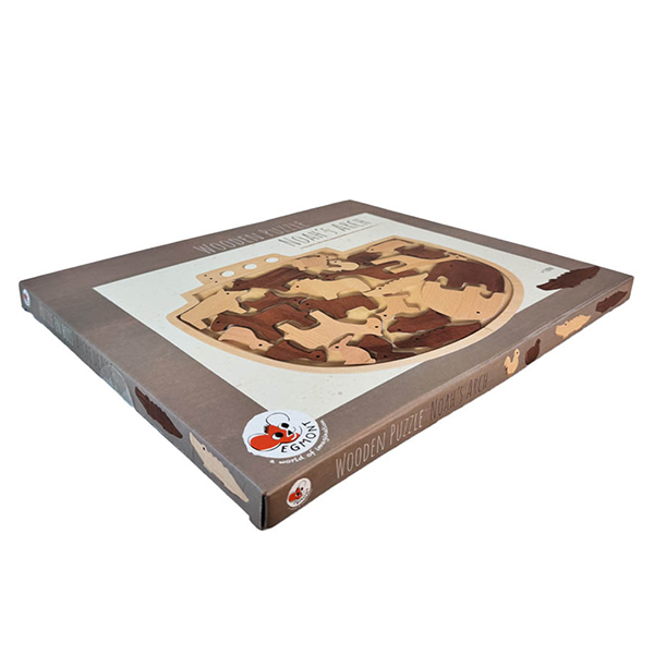 24 wooden animals want to find a place in the Arch of Noah. This educational game in wood is not only a puzzle, you cn also play with the pairs of animals and invent all kinds of stories. +18M.