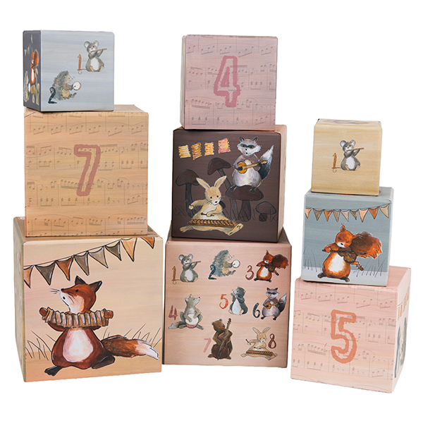 This stacking pyramid with the theme of the animals-musicians will help the little ones to learn to count, to measure and to develop the fine motor skills. Stack the cubes one on top of the other and then topple them over. Kids love this game, they can't get enough of it.
