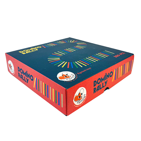 200 domino's to build a great track. A few bigger blocks and a bell to mark the end. Watch out! Who will make the first domino fall? There they go, till the bell rings. Dexterity and patience are required.