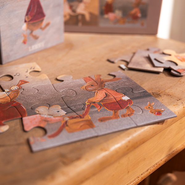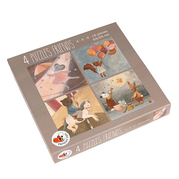 4 charming puzzles with 4, 6, 9 and 12 pieces.