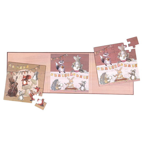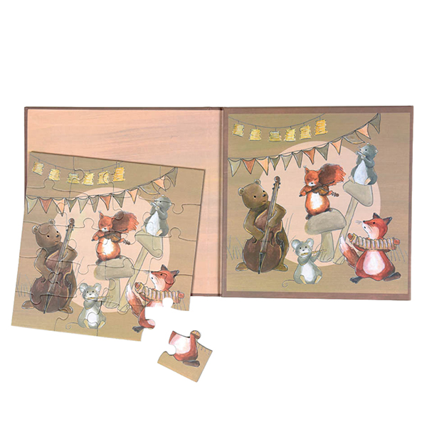 Open the side panels of this magnetic game and you will find two puzzles on the musicians. The drawings are hand painted by our designer. Easy to play with on a trip, in the car or the restaurant. Easy to take with you wherever you go, thanks to the magnetic side.