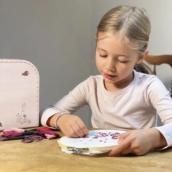 Cotton fabric, drum, scissors, needle and thread…everything you need to make a beautiful ladybug embroidery. + 7 years.
