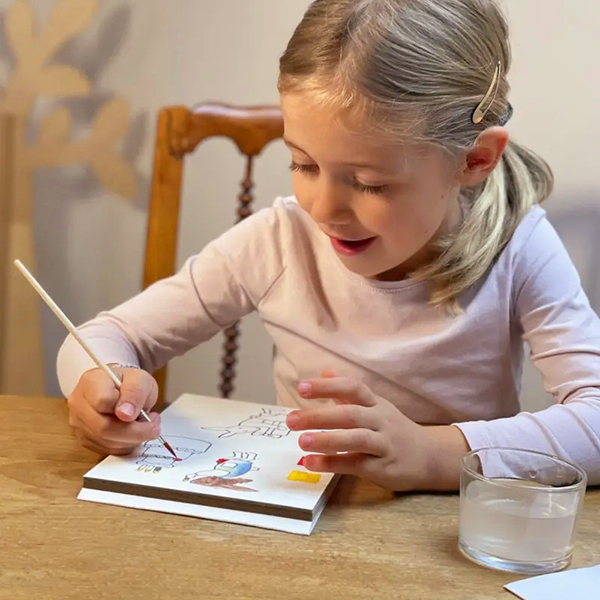 Bring the magnetic rabbits to life by painting them with watercolour. 9 pre-cut illustrations, 1 brush and 6 colours to dilute and mix... All you need is a glass of water!
