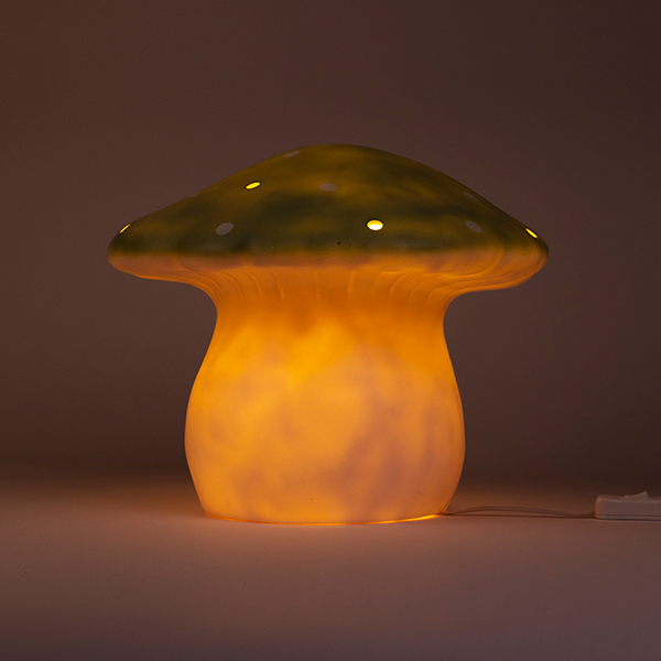 With the night light Big Mushroom Almond, a whole dream world opens up! The nightlight gives a very soft and veiled light and will help the little ones to fall asleep without fuss. Lighted or not, the Mushroom is always a nice decorative object.Traditionally made and painted by handFor the safety of the kids, supplied with LED system of 1.5 W.