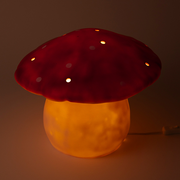 Bring a magical glow to any nursery or kids’ room with this iconic Mushroom Lamp in Red Brick. Handcrafted with care and painted in rich, enchanting tones, each piece is unique. The warm ambient light create a fairy-tale atmosphere both day and night. Perfect as a nightlight, reading companion or whimsical décor for kids and grown-ups alike.