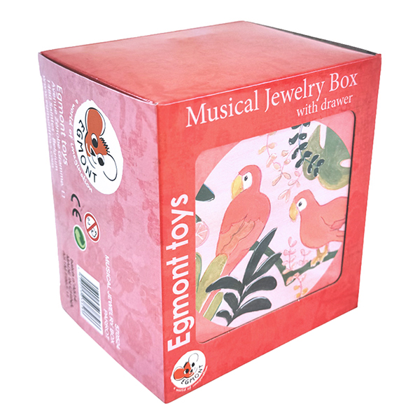 Little hands learn to organise special keepsakes whilst enjoying the hand-finished tropical parrot design. The sturdy hinged lid and pull-out drawer are built to last through years of play.